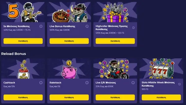 Τύποι Μπόνους Spinorhino για Έλληνες Παίκτες