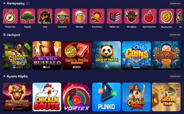 Αν θέλετε κυρίως τροχούς, η ενότητα φρουτάκια Spinorhino είναι ο πιο γρήγορος τρόπος για να περιηγηθείτε, να φιλτράρετε και να ανοίξετε σελίδες παιχνιδιών. Για παίκτες που αναζητούν φρουτάκια καζίνο Spinorhino, εμφανίζουμε επίσης λίστες παρόχων όπως Yggdrasil, Red Tiger, Betsoft και Thunderkick, ώστε να ακολουθείτε τα στούντιο που ήδη γνωρίζετε. Το στοίχημα αθλημάτων είναι επίσης διαθέσιμο, με τις αγορές να εμφανίζονται μέσα στο μενού του sportsbook.