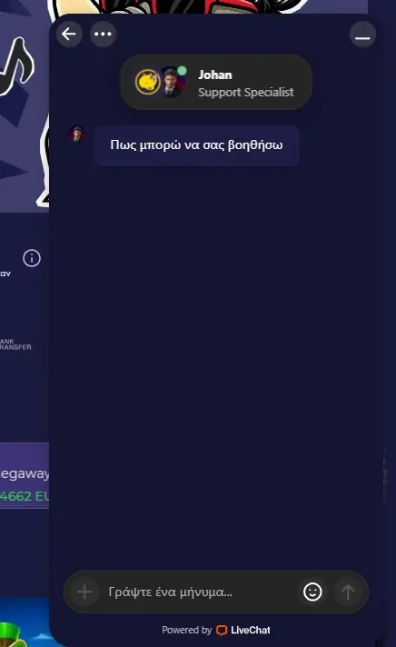 Η υποστήριξη είναι διαθέσιμη μέσω live chat στην ιστοσελίδα και μέσω email. Το Spinorhino προσφέρει βοήθεια στα Αγγλικά, στα Ελληνικά και στα Γερμανικά, ώστε να επιλέγετε τη γλώσσα που σας είναι πιο εύκολη. Το live chat είναι καλύτερο για γρήγορους ελέγχους όπως επιλεξιμότητα μπόνους, ενώ το email λειτουργεί καλά για θέματα εγγράφων και ελέγχους λογαριασμού.